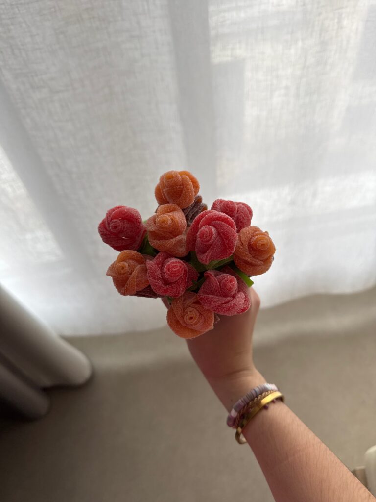 Par exemple, comme les filles reçoivent toujours des fleurs, j’ai décidé d’offrir un bouquet de roses que j’ai fait en enroulant des bonbons (ça a fait son effet !). Les bouquets de fleurs peuvent être faits en papier ou en crochet. Vous pouvez créer une boîte avec des cœurs et des petits mots, à ouvrir chaque jour ou quand ça ne va pas. Ce sont souvent les petits gestes qui font le plus plaisir : prendre de son temps pour la personne qu’on aime. Faire quelque chose de ses mains, c’est une action remplie d’émotions et de douceur.